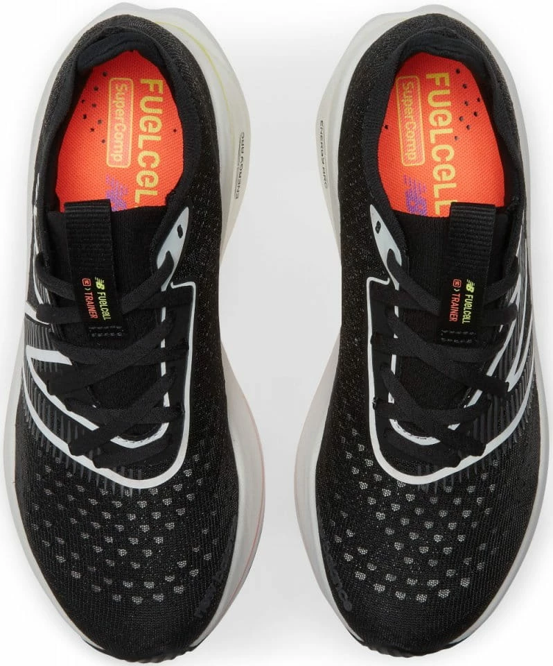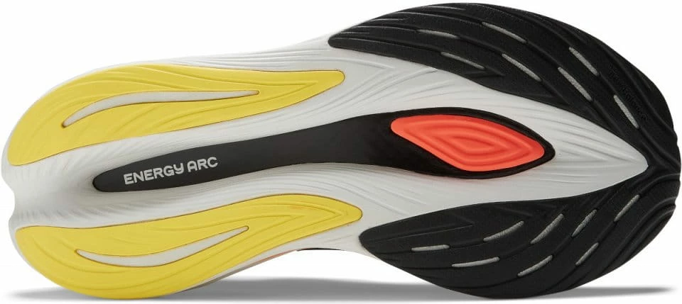 The FuelCell SuperComp Trainer brings the seconds count performance of energy-return technology from race day to a high milage training shoe. In this execution of new Energy Arc technology, a stacked height midsole houses an arched carbon fiber plate, sandwiched between two layers of FuelCell cushioning, leaving a hollow channel through the middle of the shoe. The plate is flattened into the void with each foot strike, and returns energy as it reshapes, creating a high rebound sense of propulsion. The FuelCell SuperComp Trainer is designed to look, feel, and perform differently.
